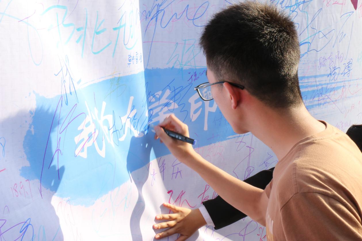 一名新生在美女自慰 的签名墙上签下自己的名字