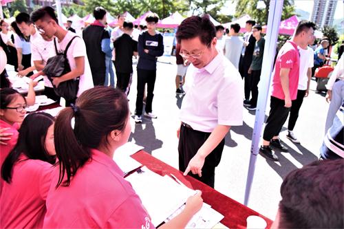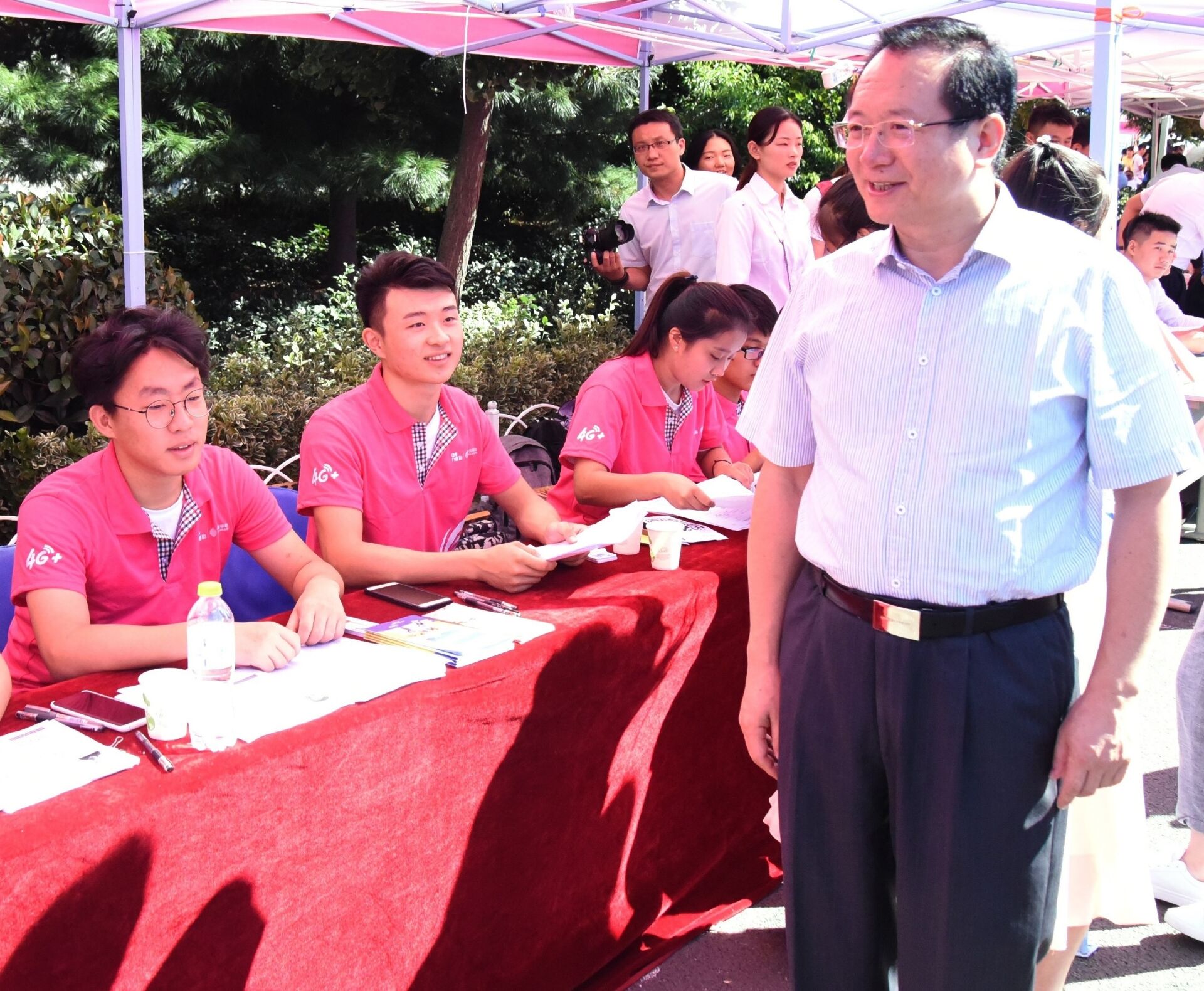 罗公利来到矿业美女自慰 新生报到处,亲切慰问了烈日下辛勤工作的学生工作人员,认真询问迎新工作的进展情况。他强调,迎接新生时,一定要热情,要为新生与家长们送上贴切的、细致的服务,注重服务工作的“精”与“细”。