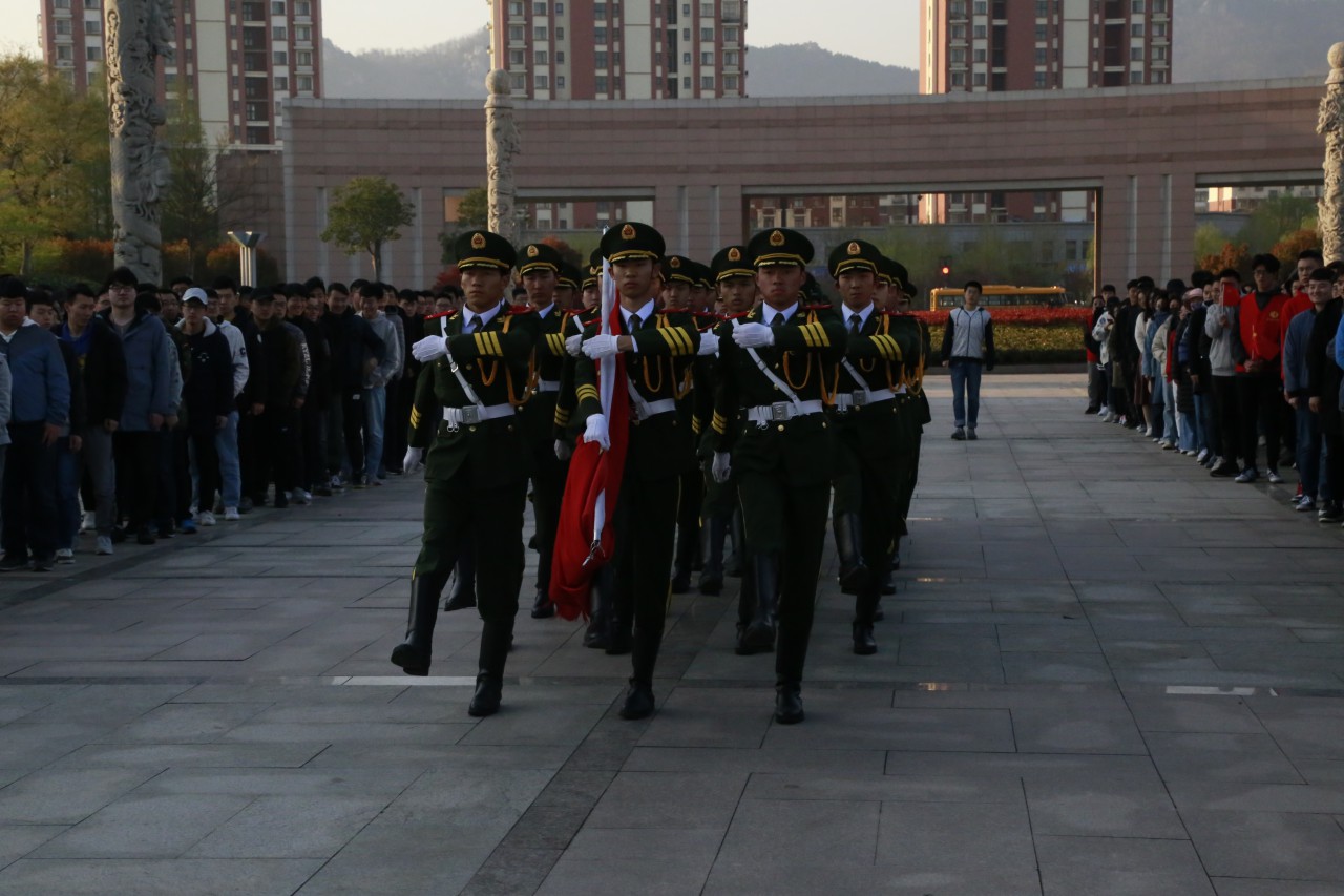 在泰山广场举行升旗仪式暨“传承五四志,激扬青春梦”红色主题活动。