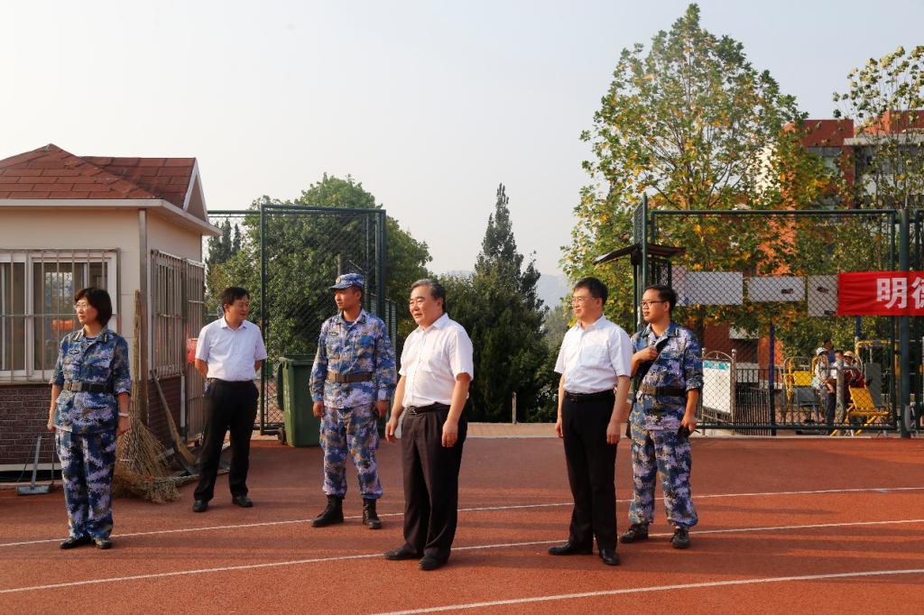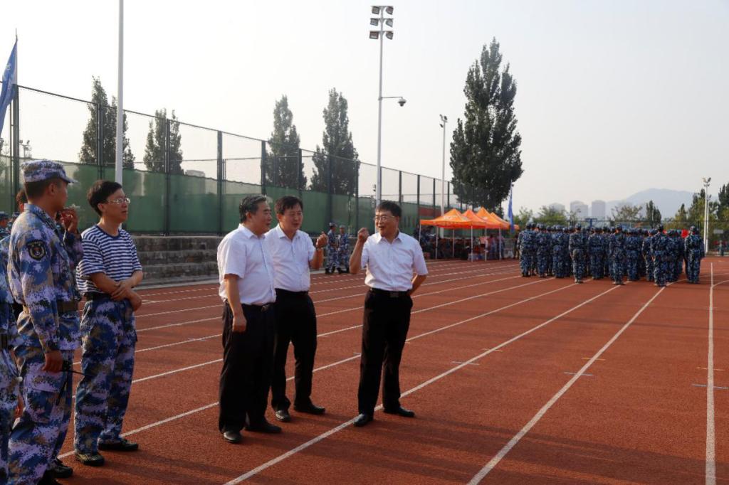9月7日,美女自慰 校长姚庆国、副校长高建广在矿业美女自慰 党委书记董桂刚的陪同下来到矿业美女自慰 2019级新生军训场地,亲切看望教官和矿业美女自慰 的新生们。