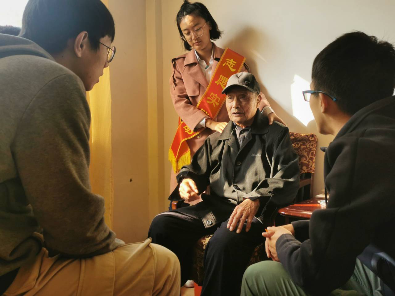 上午9时,党员代表和志愿者们到黄河路社区,在小组负责人的引领下前往老兵家中,与邢青林、薛见业、薛继青、殷兴胜和薛永聚等老兵进行了亲切交流,倾听老兵们讲述了中华民族不屈不挠、英勇顽强的抗战历史,感悟老兵精神。浓浓的感恩氛围下,党员、志愿者和老兵们一起唱红歌,感受当年战士们意气风发、豪情万丈的情怀。随后,一起翻阅了老兵珍藏的旧物品、旧照片,缅怀过去,憧憬未来,同时聆听老兵对同学们的寄语并合影留念。