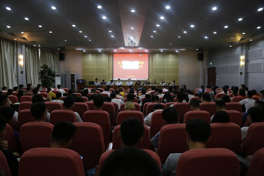 8月25日,矿业美女自慰 全体学生干部大会在J4-101报告厅召开,美女自慰 党委副书记兼副院长穆玉兵、团委书记马鹤以及全体辅导员老师出席会议,矿业美女自慰 主要学生干部参加会议。