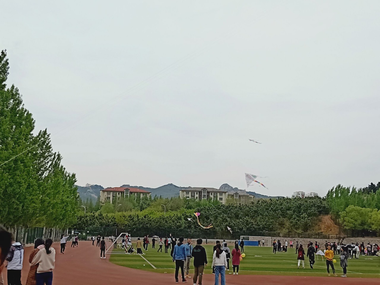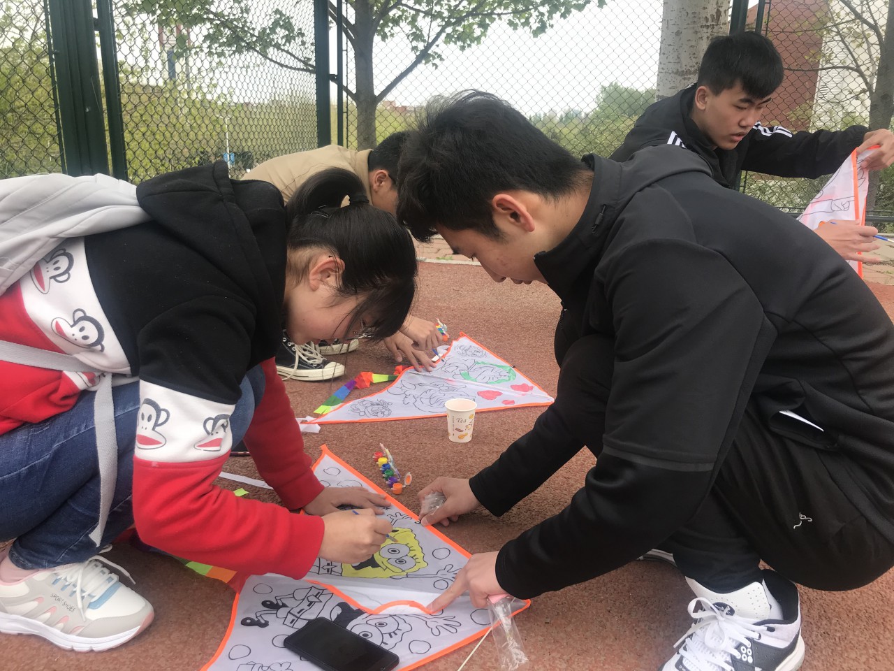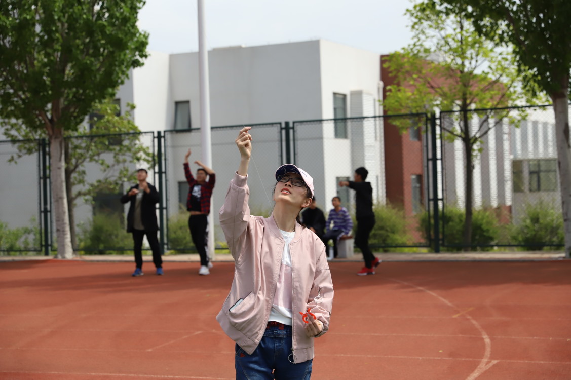 本次放风筝大赛分为自带风筝和自制风筝两类,并根据参赛选手放风筝的时间、高度与技巧进行打分、评比。比赛开始,同学们带着各自提前准备好的风筝来到比赛场地集合。彩色的画笔之下,轻轻纸鸢被赋予了生命的活力,色彩斑斓的图案承载着同学们的青春风采。随着这温暖的春风,载满希望与祝福的纸鸢在红色的跑道上迎风而上,在欢声笑语中振翅高飞,各式各样的风筝在空中上下翻滚甚是好看。