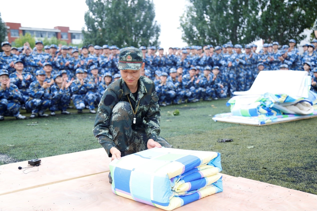 举行了叠被子大比拼,新生们自告奋勇,纷纷参加比拼,他们动作敏捷,一床蓬松的棉被就在简单的“叠、压、捋”几个动作之下,变成了四四方方的“豆腐块”。新生们以出色的表现完成了比拼,展现了能源学子的青春风采。