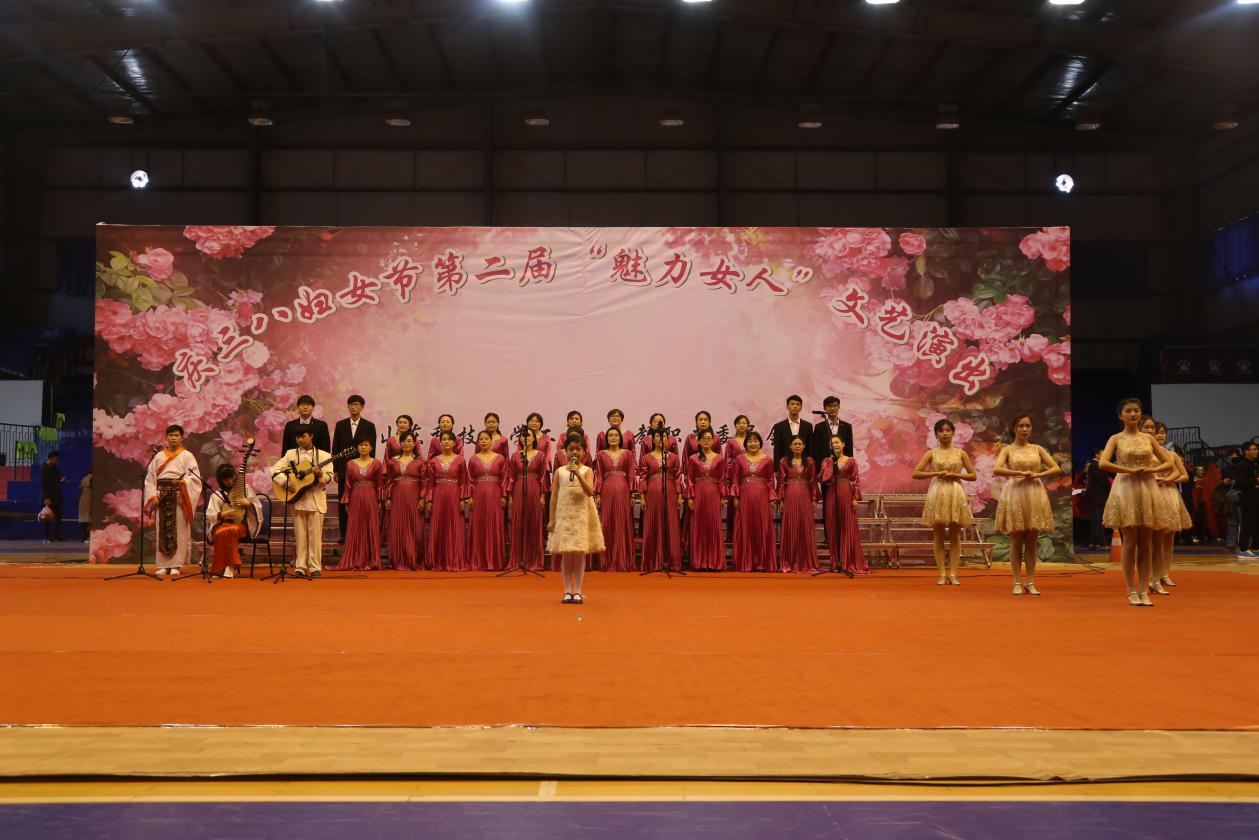 活动现场,女教职工们盛装出席,共同庆祝自己的节日,精心排练的《天之大》引领群芳,赢得了现场阵阵掌声。伴随着长笛、琵琶、吉他的伴奏以及悠扬的童声,矿院女老师们饱含着深情将歌词缓缓唱出,手语的配合也显示了表演形式的新颖。温暖厚重的歌词引起了在场观众深深的共鸣,“天之大,唯有你的爱是完美无瑕,天之涯记得你用心传话;天之大,唯有你的爱我交给了他,让他的笑像极了妈妈”,爱的传递回荡在体育馆上空,也充分展示了矿业学院女教职工们的风采,弘扬了自尊、自爱、自强的新时代女性精神。(李芙蓉)