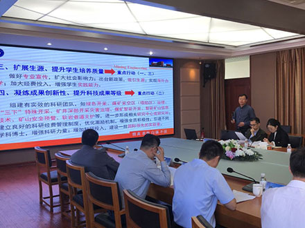 会上,采矿工程系张培森、安全工程系周刚、工业工程系贾顺、力学系谭涛分别汇报了各自专业的新旧动能转换任务对接工作方案。