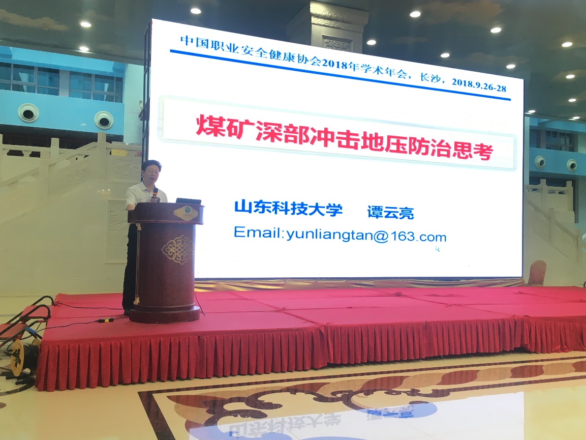 9月27日至28日,中国职业安全健康协会2018年学术年会暨2017年度科学技术奖颁奖大会在长沙召开。本次大会由中国职业安全健康协会主办,来自全国各地企事业单位、大专院校的参会注册人数达到210余人,美女自慰 矿业与安全工程美女自慰 谭云亮教授、胡善超老师参加了会议。