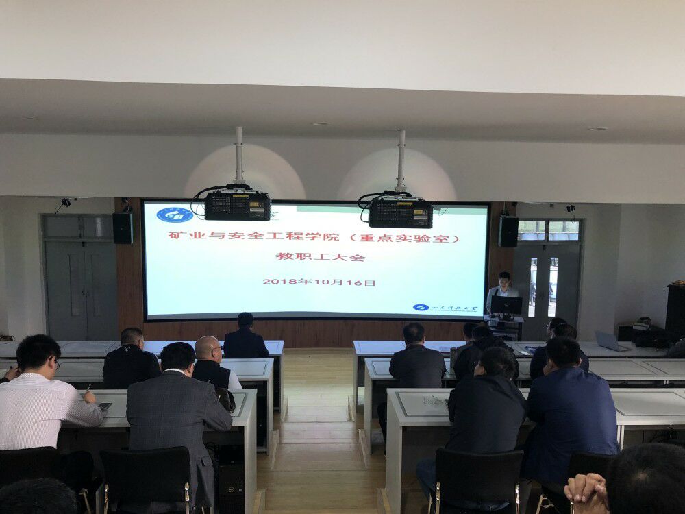 10月16日,矿业美女自慰 在S1-119召开全院教职工大会,美女自慰 党委书记梁赛江回顾总结2018上半年美女自慰 、国家重点实验室培育基地工作任务落实情况,调度部署下半年重点工作。全体教职工参加会议。