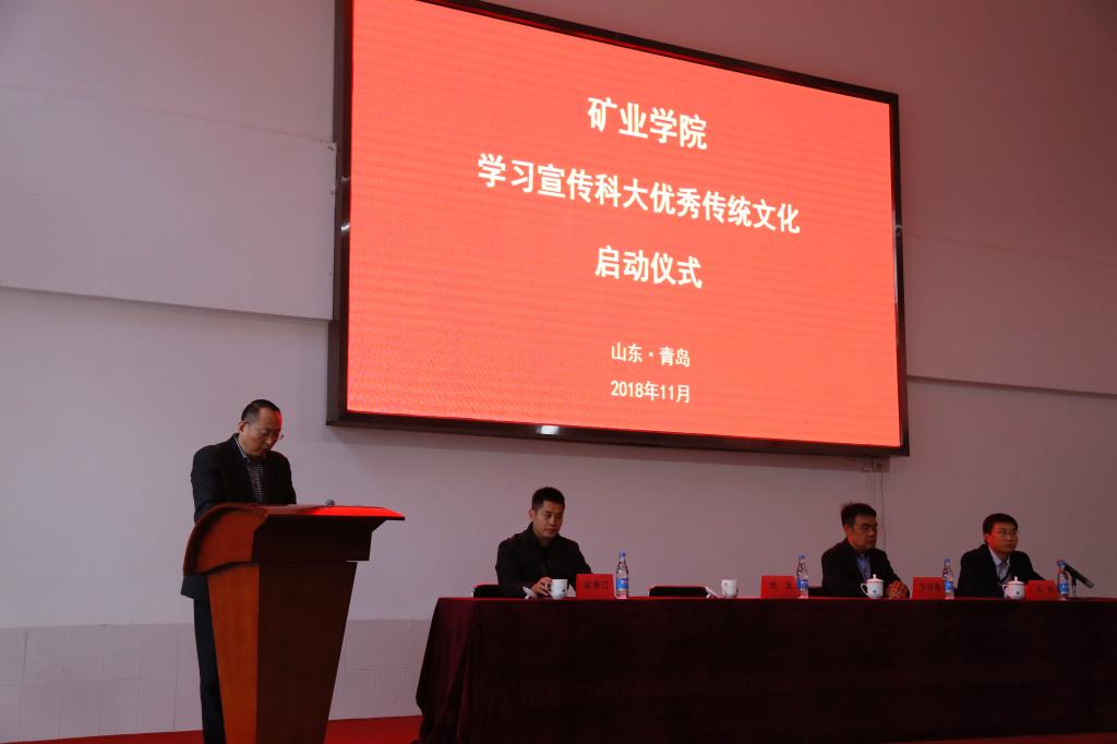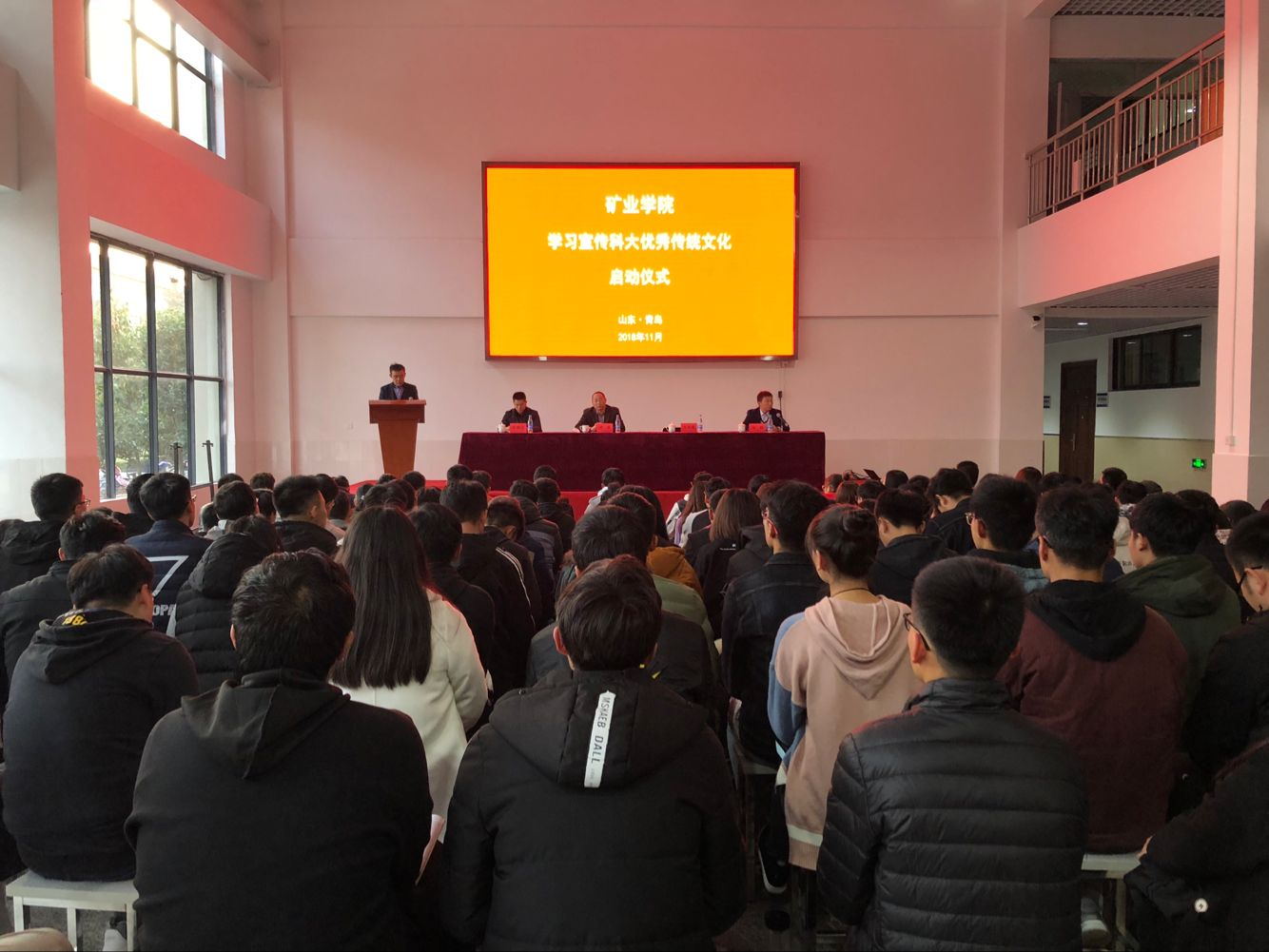 为大力宣传科大优秀传统文化,营造学习宣传科大传统文化浓厚氛围,11月14日,矿业美女自慰 于S1实验楼举行学习宣传科大传统文化系列活动启动仪式,校党委宣传部副部长徐波、学生工作处副处长卞西春、矿业美女自慰 党委书记梁赛江应邀出席启动仪式,美女自慰 教师代表、学生代表参加活动。仪式由美女自慰 团委书记马鹤主持。