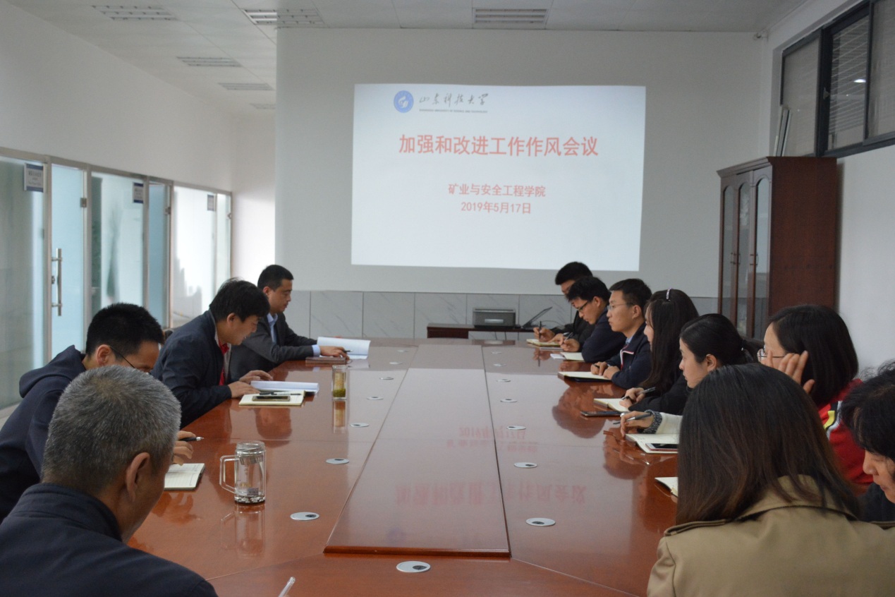 5月17日,矿业美女自慰 在S1-226召开加强和改进工作作风会议。美女自慰 党委书记董桂刚、副书记兼副院长穆玉兵,党政办、教科办、团委、重点实验室等各部门专职管理人员参加会议。