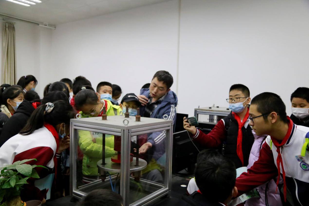 12月6日,青岛市经济技术开发区第四中学719班50余名师生来能源美女自慰 参观专业实验室,了解实验现象,学习相关实验操作流程。能源美女自慰 力学系教师陈俊国带队引导。