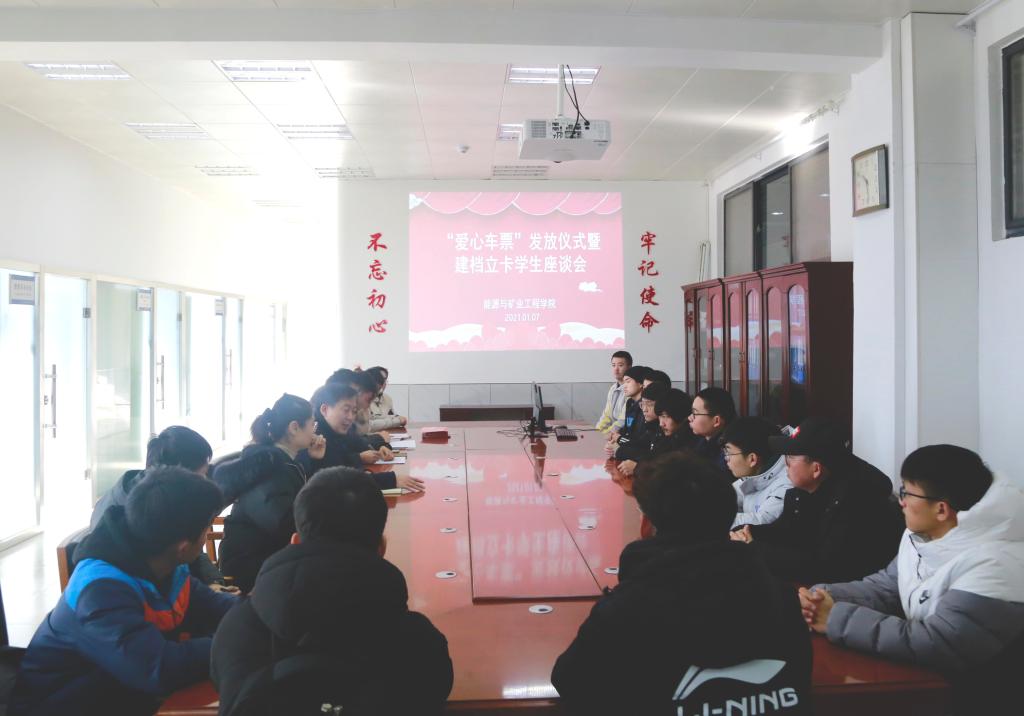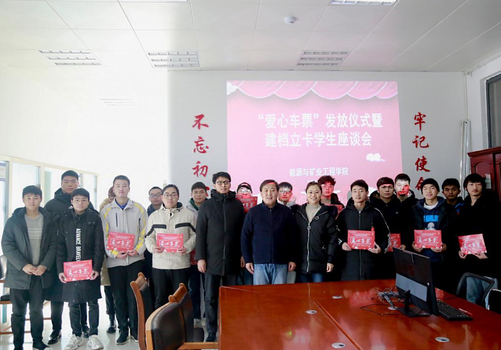 1月7日,能源美女自慰 举办“爱心车票”发放仪式暨建档立卡学生座谈会。能源美女自慰 党委书记董桂刚、党委副书记兼副院长许琳出席,美女自慰 团委老师和建档立卡学生代表参加。