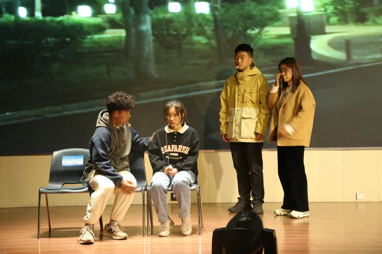 此次比赛共由来自2022级本科生的九支队伍组成,各班级代表队运用精湛的演技对责任、内卷、抗疫等主题进行了生动演绎。本次参赛作品主题鲜明,心理冲突表现清晰,弘扬了“健康阳光,积极向上”的生活态度。比赛过程中同学们激情饱满,配合默契,极具感染力。舞台表演形式丰富多样,在轻松和谐的氛围中生动再现了大学生日常生活中经历的大事小情,引起在场观众的广泛共鸣并赢得了阵阵掌声。