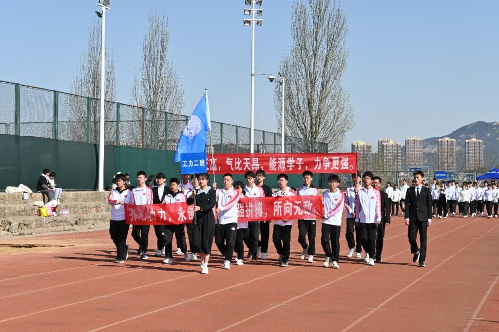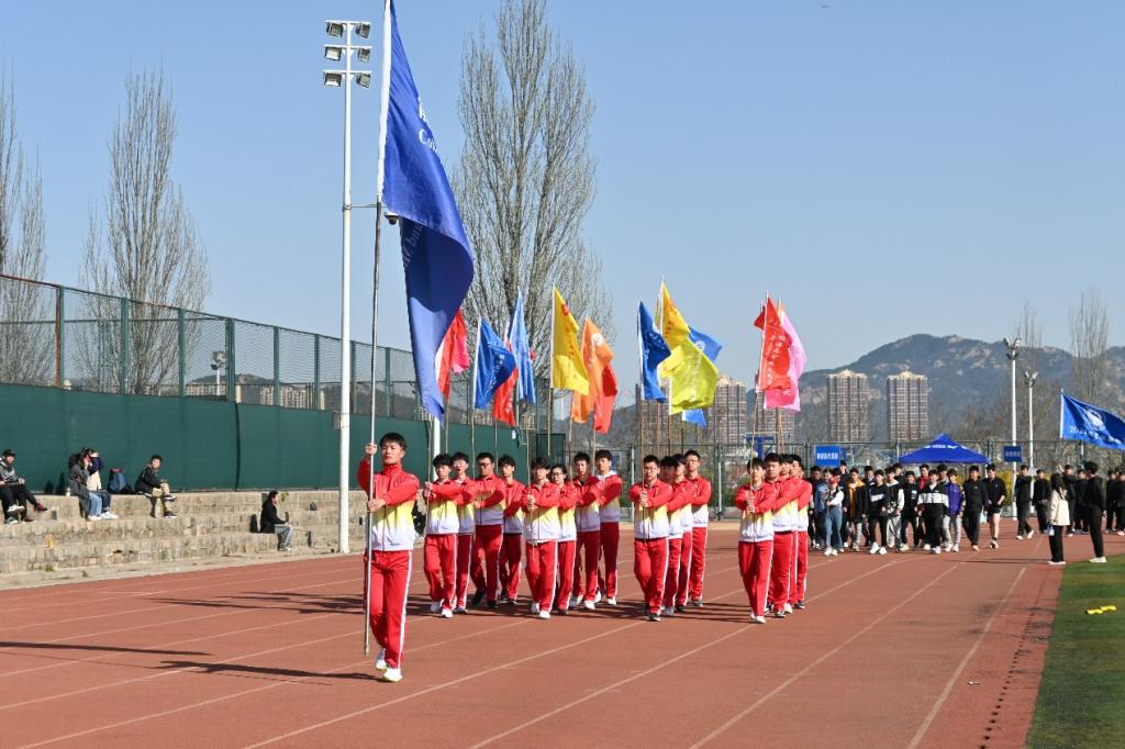 春风和煦,歌声高昂,国旗护卫队护送鲜艳的五星红旗入场。在雄壮激昂的运动会进行曲中,各班级代表队踏着整齐的步伐,喊着响亮的口号精彩亮相,展现了当代大学生的独特风采。