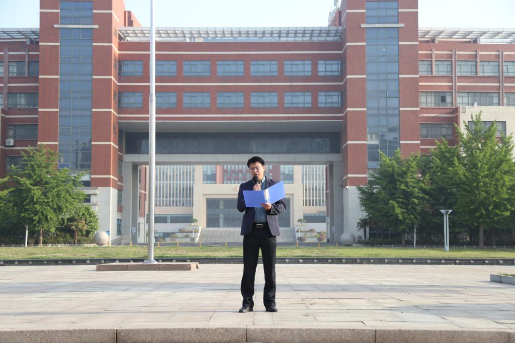 6点25分,升旗仪式正式开始,在全体师生的注视下,国旗护卫队迈着整齐的步伐,庄严地将国旗护送至升旗台。伴着国歌,升旗手振臂一挥,五星红旗冉冉升起,迎风飘扬,全体师生行注目礼。升旗结束后,学生陈颖、徐嘉嵘、夏天昊、任鹏飞在国旗下作主题宣讲,歌颂青春的使命,弘扬青年学子踔厉奋发、敢于担当的青年精神。团委书记周尚涛讲话中,希望同学们加强学习,筑牢理想之基,在拼搏进取中不断增强爱国、爱党的坚定信念;提升技能,凝聚青春力量,保持奔跑的奋斗力,持续砥砺奋进,主动肩担大任;勇于奋斗,追求人生价值,踌躇满志,意兴磅礴,时刻准备着为实现中华民族伟大复兴建设贡献自己的青春力量!