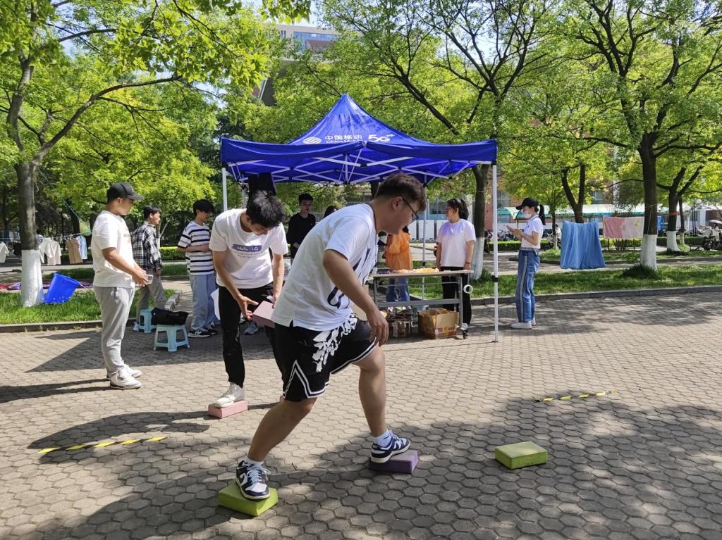 此次趣味运动会将竞技与娱乐相结合,共分为“采”石过河、精准打击、齐心合“力”三个项目,并为参加的同学们精心准备了小奖品。“采”石过河中,三人同时用石头(泡沫砖)过河,到达终点线后将三块石头(泡沫砖)携带跑回起点;精准打击中,需要完成5圈大象鼻子转圈,将网球扔进桶里;齐心合“力”中,由6人组成的队伍站在风火轮布上,一起前进直到最后一人通过终点线。