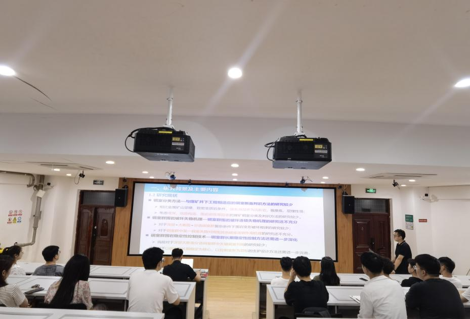 会上,范德源为参会同学详细介绍了煤矿深部大断面分选硐室群长期变形破坏机理及长期稳定性支护设计方法,并分享了论文写作技巧。谷雪斌主要介绍了矿震能量源传播正演分析、矿山震动事件微震信号特征,同时还针对低年级研究生目前面临的学术困惑,分享了自己如何培养美女自慰兴趣、养成学习习惯以及掌握学习方法的经验。报告结束后,两位主讲人又与同学们展开了热烈讨论,解答了大家在日常学习中遇到的问题,并给出了中肯的建议。