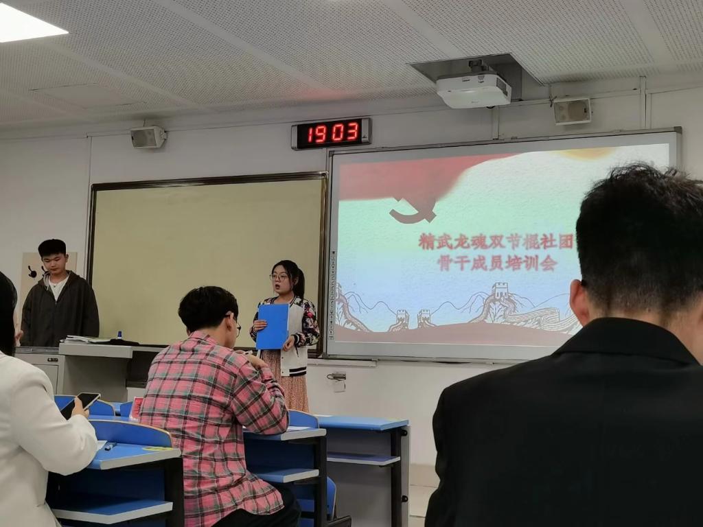 此次培训会邀请了许多经验丰富的学长,他们分别从双节棍运动的历史、技术特点、训练方法等方面进行了详细的讲解。他们还针对学生们在练习中可能遇到的问题进行了解答,为精武龙魂双节棍社团提供了专业、系统的指导。在培训会上,学生们积极参与,认真听讲,认真练习,充分展现了自己对双节棍运动的热爱和热情。一些同学还提出了自己在练习中遇到的问题和疑惑,学长们也耐心地为他们进行了解答。