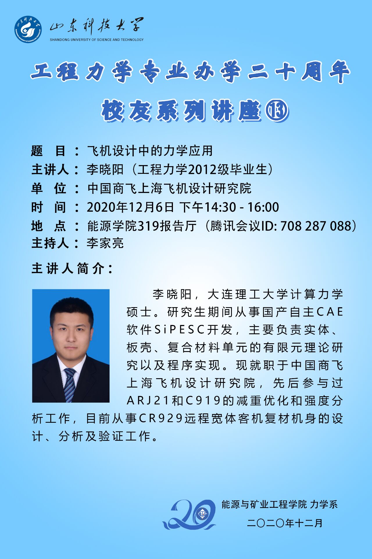 工程力学专业办学二十周年校友系列讲座13--飞机设计中的力学应用