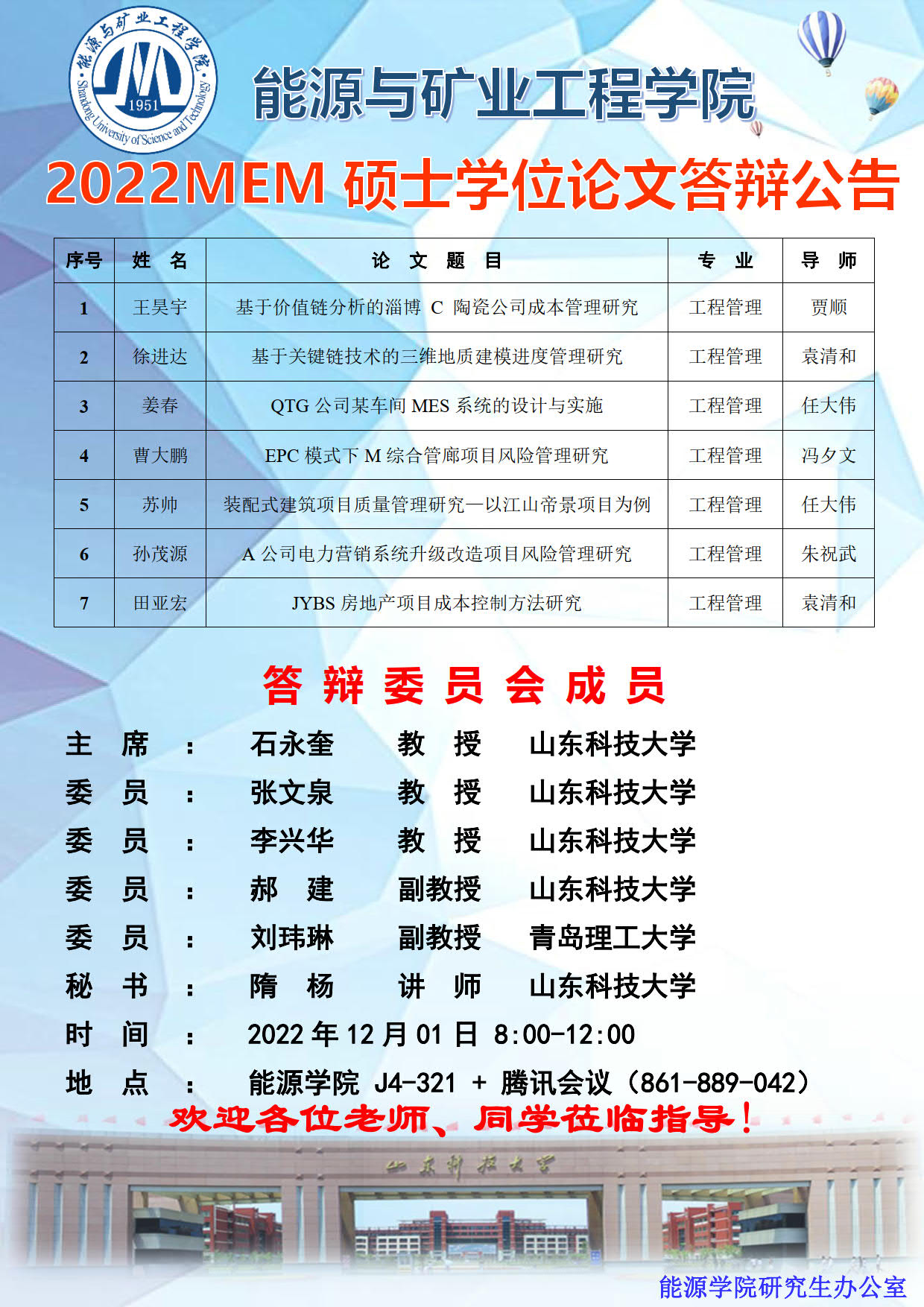 2022MEM硕士学位论文答辩公告2