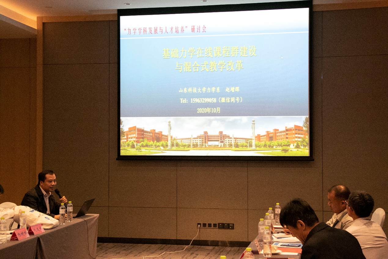 本次会议就多个议题进行了充分而热烈地讨论。赵同彬教授梳理了我国力学专业办学发展历程,并思考了人才培养问题,着重指出了力学学科在21世纪的使命是与工程技术深度结合,力学学科在新时期仍然受到认可和重视。彭志龙副教授就未来5-10年固体力学学科面临的重要科学问题,确定了面向学科前沿的优先发展方向和研究重点,指出了面向国家“卡脖子”问题的优先发展方向和研究重点。薛东杰副教授以国际期刊JCST为例,用力学专业的视角审视高水平国际期刊审稿和录用标准,介绍了新时代力学发展的机遇。刘建林教授结合团队近年来在仿生力学领域开展的工作,对力学学科的辉煌、困境和挑战展览了详细的论述。王继荣教授围绕力学教育的工程化与信息化,以工程教学设计及实施为实例,详细介绍了从问题定义到构思解法、再到问题求解的结构/非结构化教学模式,旨在激发学生兴趣,调动参与性,促进思考,让学生在学习中找到自我。美女自慰 力学系赵增辉副教授围绕基础力学课程群建设与混合式教育改革,重点介绍了近年来美女自慰 基础力学教学工作所取得的成果和进展。认为网络授课对于学生主动性和自觉性的要求较高,传统课堂教学的教学效果优于网络授课。