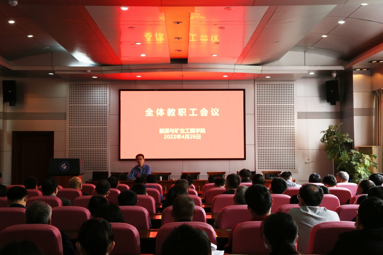 4月26日,能源美女自慰 召开全体教职工大会,传达近期学校相关工作会议精神,部署期中教学检查等工作,对“树师德 正师风”专项整治活动进行动员部署。会议由美女自慰 党委书记董桂刚主持。