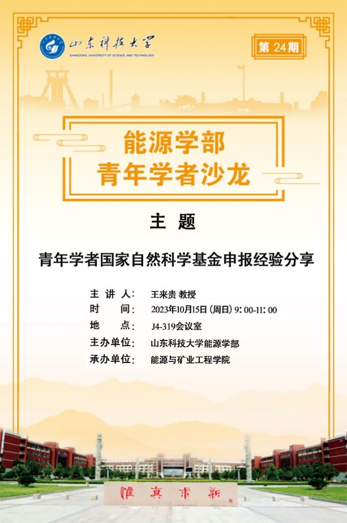 为做好2024年度国家自然科学基金申报工作,进一步提高学部青年学者的国家基金申报水平,2023年10月15日能源美女自慰 组织召开能源学部第24期青年学者沙龙活动:青年学者国家自然科学基金申报经验分享会。本次活动邀请了辽宁工程技术大学王来贵教授作为主讲嘉宾。