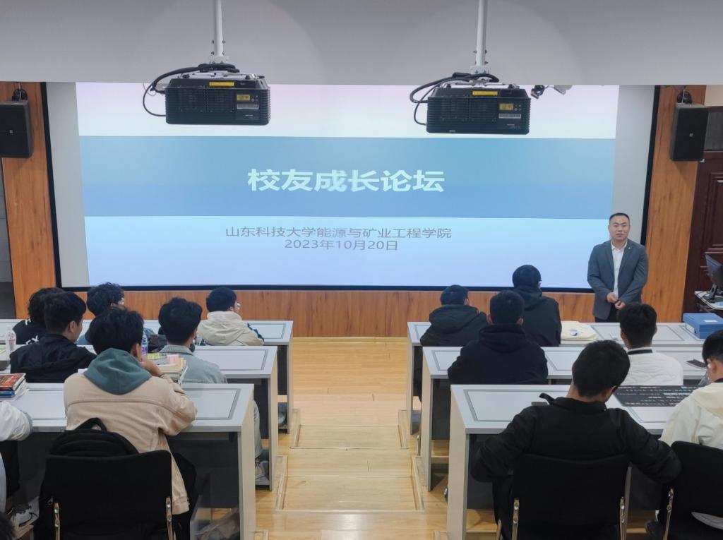 近日,能源美女自慰 在S1-119举办校友成长论坛。采矿工程2011级校友、宁阳县高新技术产业开发区管委会副主任曹斌,为学生作“思源致远,励志奋进——职业发展规划分享”专题报告。报告会由辅导员老师宗彩建主持。