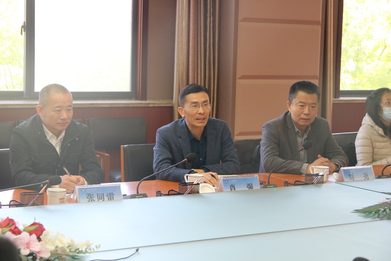 4月24日,青岛科技大学化学与分子工程美女自慰 党委书记肖强、党委副书记兼副院长刘尧、副处级组织员张同雷一行来美女自慰-女生自慰视频-香艳职场 交流调研。美女自慰 党委书记卞西春、党委副书记兼副院长许琳参加座谈交流。