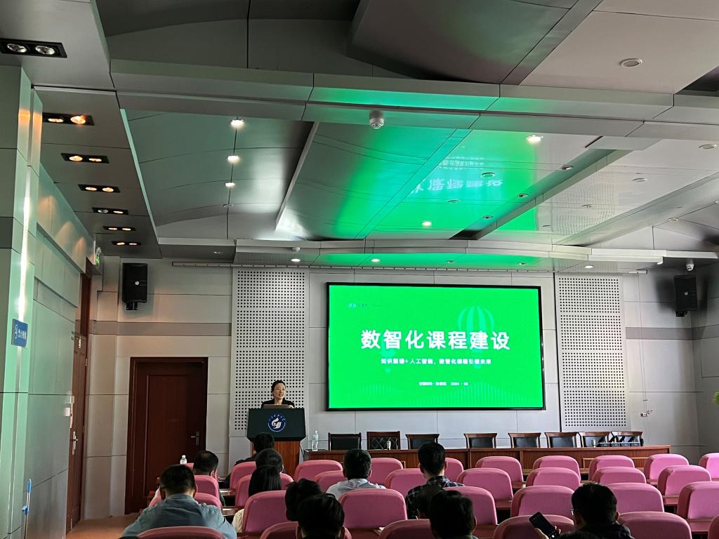 活动分两部分。首先邀请智慧树网金课咨询师张媛媛作“人工智能+背景下课程建设的数智化探索”交流报告,报告围绕数智化课程的内容与特色、数智化课程的教学运行、数智化课程建设案例三部分,梳理知识图谱的内容特色、建设模式,探讨一流课程之后数智化课程建设新趋势、新理念、新标准。