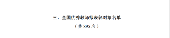 为庆祝中华人民共和国成立75周年和第40个教师节,大力弘扬教育家精神,营造全社会尊师重教浓厚氛围,激励广大教师和教育工作者自信自强、踔厉奋发,为强国建设、民族复兴伟业作出更大贡献,经各推荐单位逐级推荐,全国教育系统评选表彰工作领导小组审核评选,表彰全国教育系统先进集体585个、全国模范教师716名、全国优秀教师895名、全国教育系统先进工作者80名和全国优秀教育工作者99名。