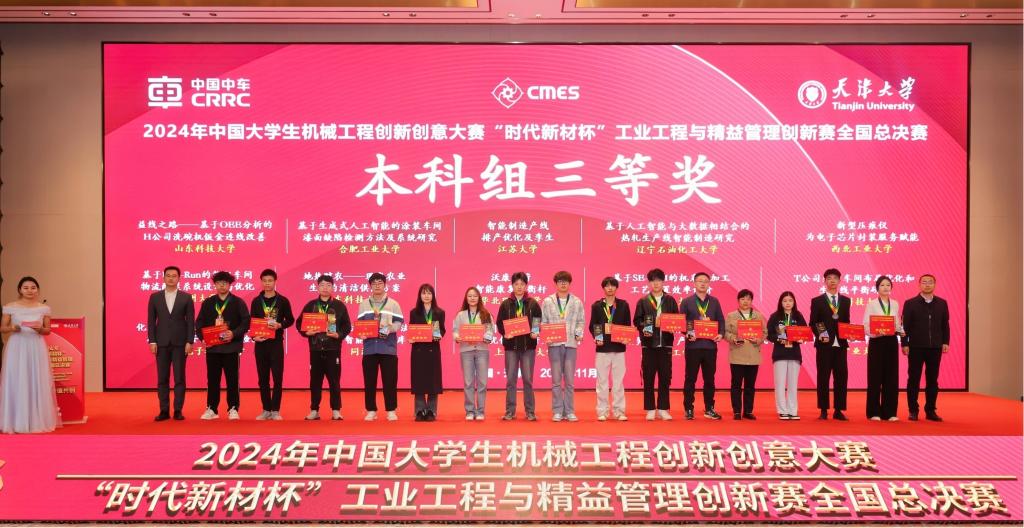 11月1日-3日,2024年中国大学生机械工程创新创意大赛工业工程与精益管理创新赛全国总决赛在天津举办。由能源美女自慰 李美燕教授、贾顺教授、颜伟副教授指导,研究生殷乐成、高芹,本科生刘振栋、刘晓琳、李威澳等带队完成的5项作品获华东北部区域赛二等奖,最终斩获全国总决赛三等奖5项,我校获奖总数量居山东省参赛高校首位。
